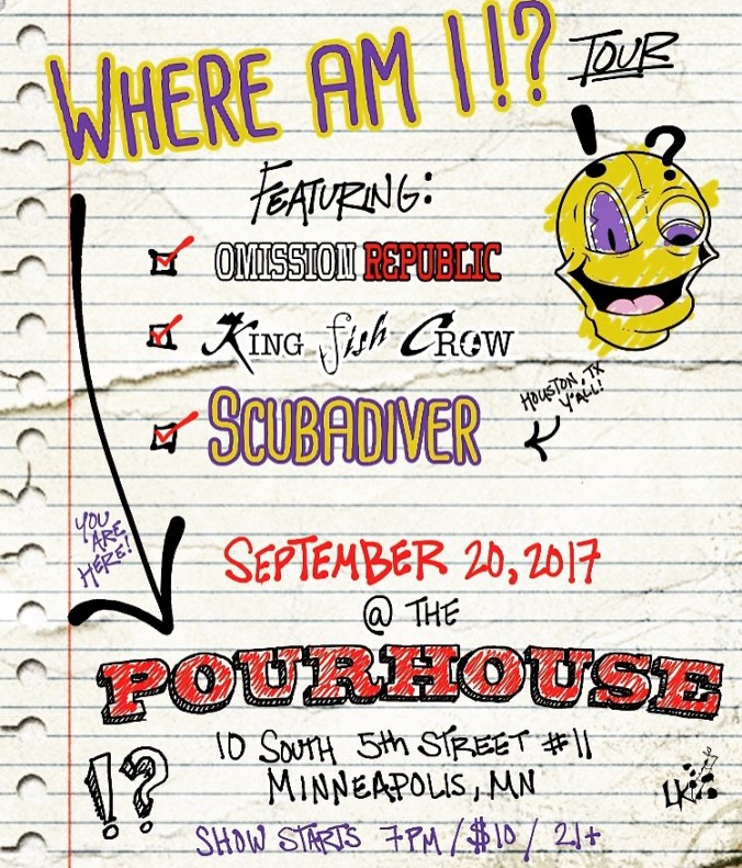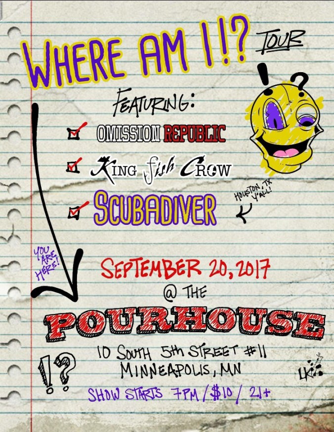 Wednesday night we played the Pourhouse in downtown Minneapolis. It’s quite a venue with a good size stage. After all the emails, it was great to finally meet the guys in Scubadiver in person. They’re super cool dudes and we wish them the best of luck. The members of Omission Republic were genuinely great human beings as well. We couldn’t have asked for a better bunch of people to share the stage with. And their bands are pretty solid too.