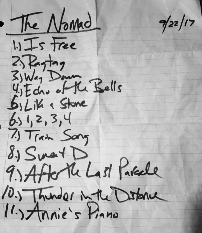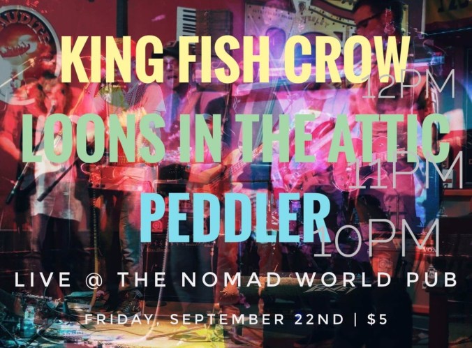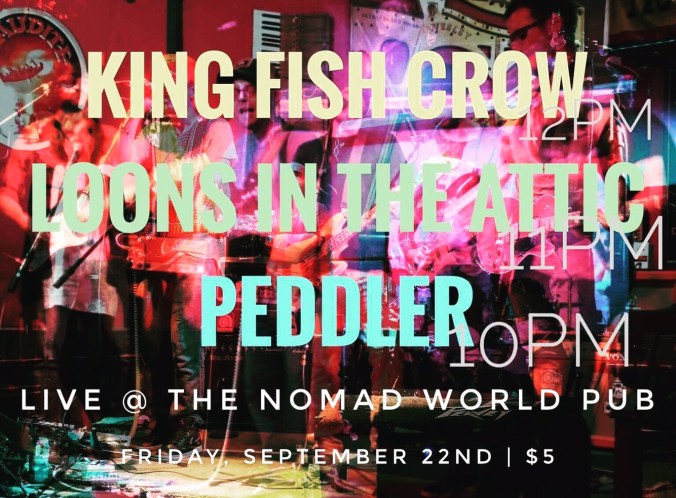 Friday night, the smoldering first day of autumn, we played the Nomad World Pub with Peddler and Loons in the Attic. It was a great show and the Nomad cranked the AC all night long.