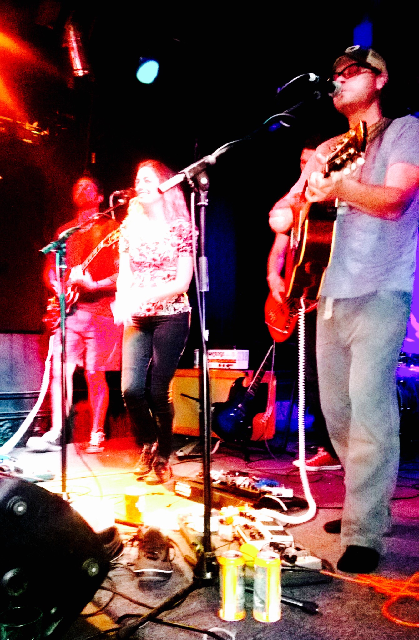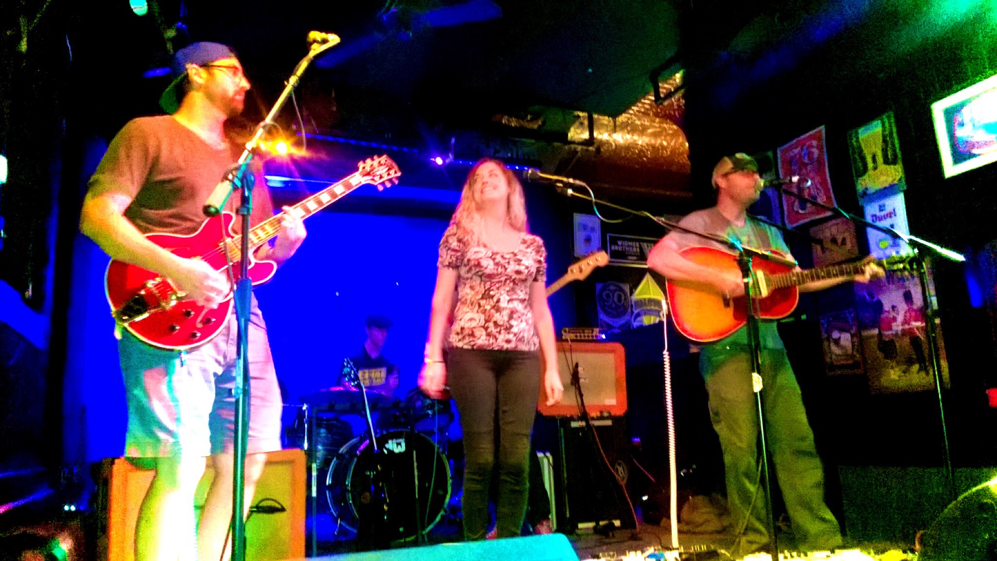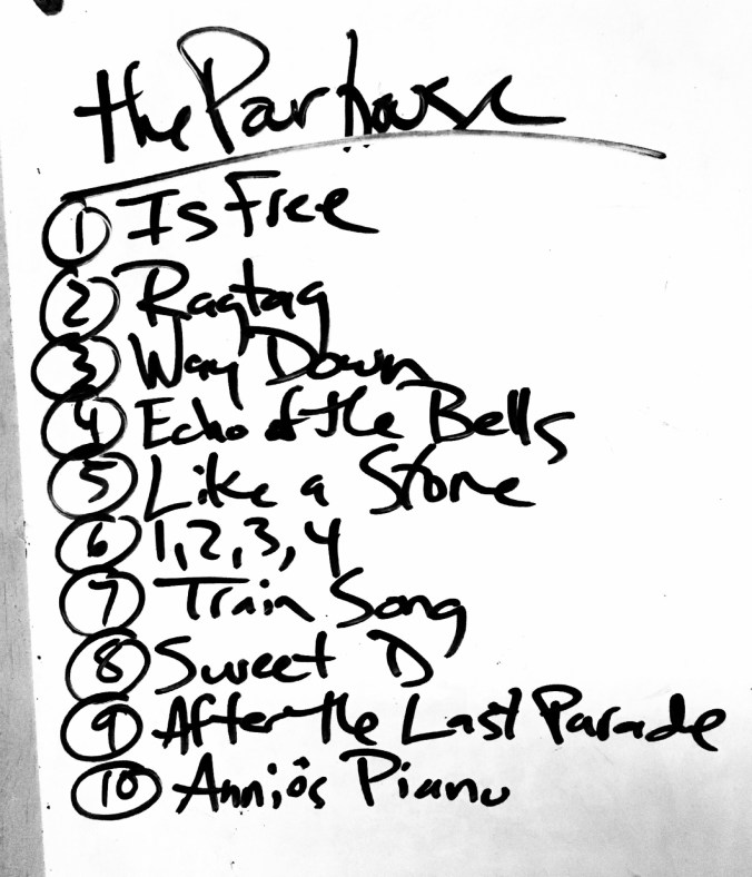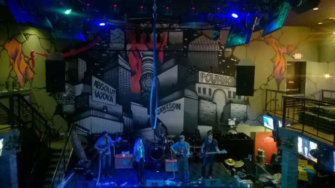 We were supposed to go on at 7, but the sound guy was late. It was closer to 7:30 when we finally sound checked and started our set. We spread out on the stage and used the room to move around. We played a set that is probably one of our stronger sets and we were on point. The show was a smashing success and went off without a hitch. Save for the string that Dave broke, prompting him to quickly switch guitars for the rest of the set. The crowd was receptive and we fed off of their enthusiasm to be alive and out in public. When they finally turned on the stage lights, two-thirds of the way through our set, it was a welcome surprise. The Pourhouse has it all: a stage, a sound system, stage lights and don’t forget the balcony. Sharing our songs with people who have never heard them before was, and is, always a thrill for us. We are very grateful for this opportunity.