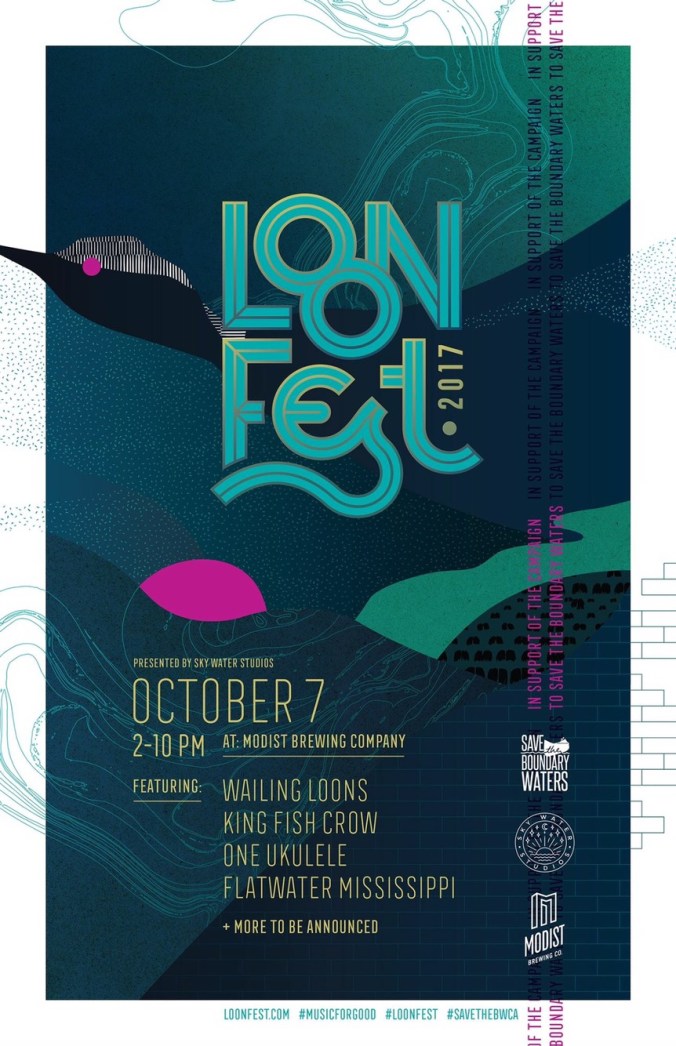 Our next show is going to be a great event. Loon Fest is coming up on October 7th at Modist Brewing and we’re on the bill with many of the same bands who played Wild Springs in Osceola, WI this summer. So, if you didn’t get a chance to come out to the festival in July, but loved the lineup, this is your opportunity to catch all the great bands in the Twin Cities. This whole event supports the Boundary Waters and every donation up to $5,000 will be matched by a generous benefactor. Come on out, support local music, protect the BWCA, make great friends, and drink local brew. We’re thrilled for the opportunity and we’re looking forward to sharing our Saturday with all of you.